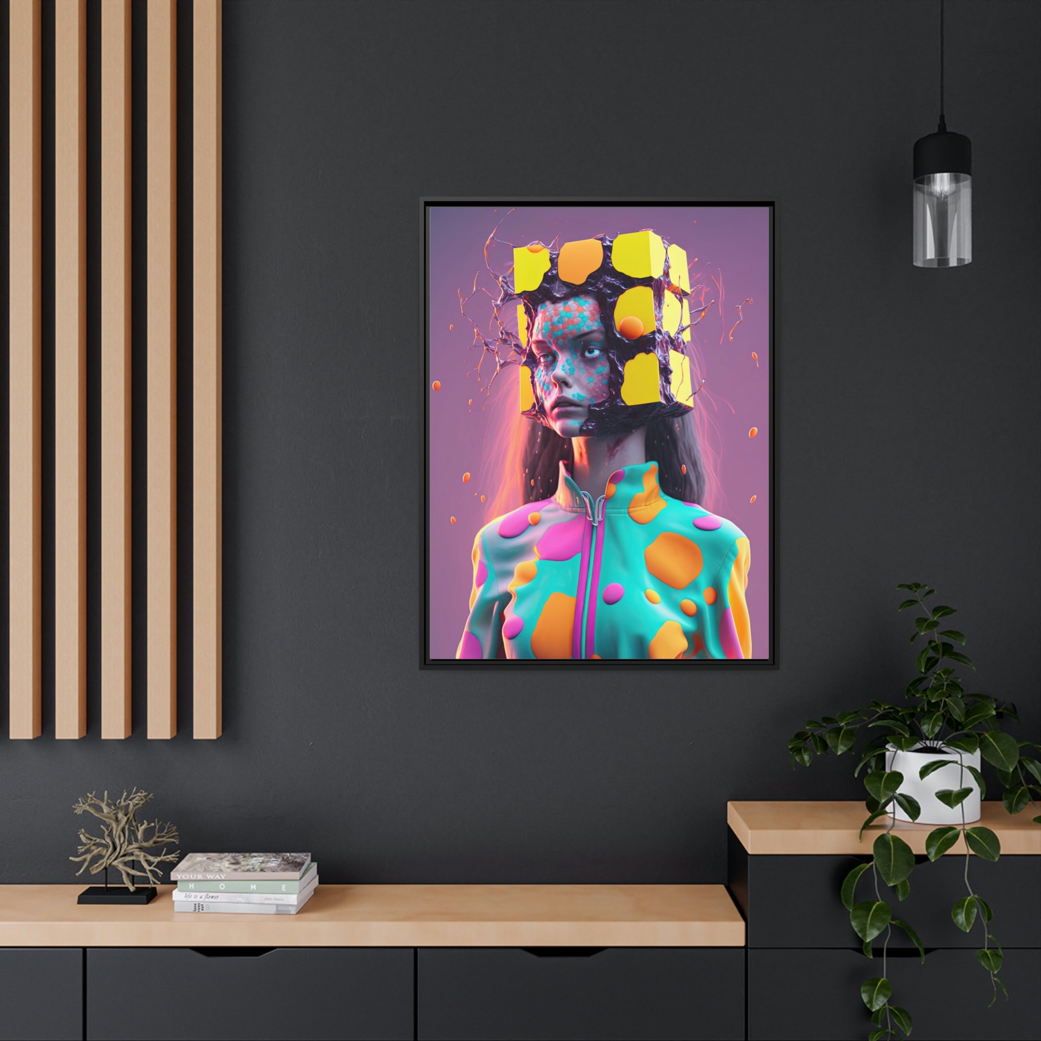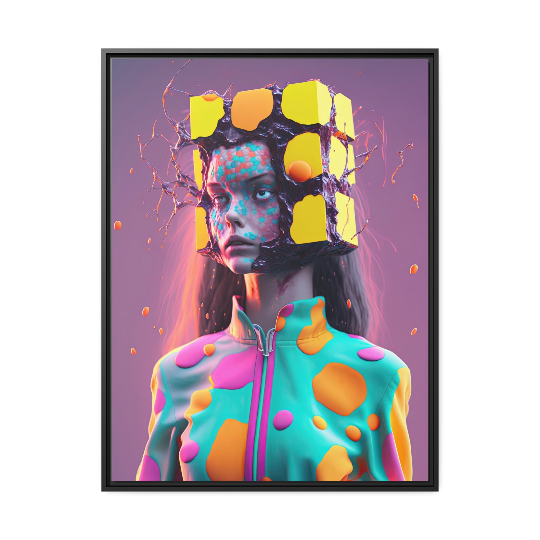 "Galactic Blocks Glam" is a stunning and playful canvas art piece that combines futuristic elements with glamour. The subject, a female with a cube block around her head, is presented in a vibrant and eye-catching array of colors. The use of bright hues and geometric shapes creates a galactic effect that is sure to transport you to another world. Whether you're looking to add a touch of fun to your office or create a statement in your living room, "Galactic Blocks Glam" is the perfect choice. This piece is guaranteed to bring energy and excitement to any space, making it the ideal addition to any modern and stylish home. Let "Galactic Blocks Glam" bring its unique charm to your space today.