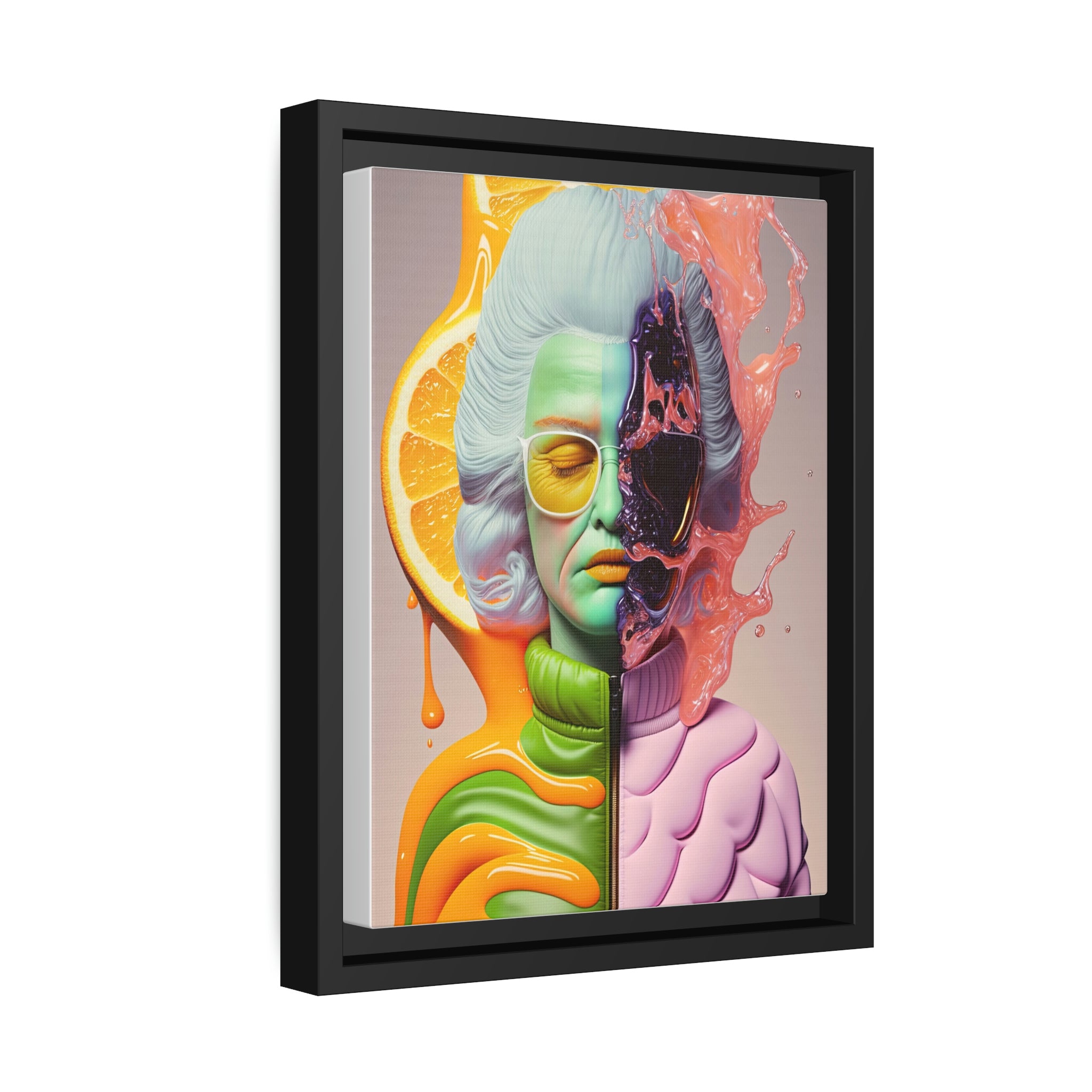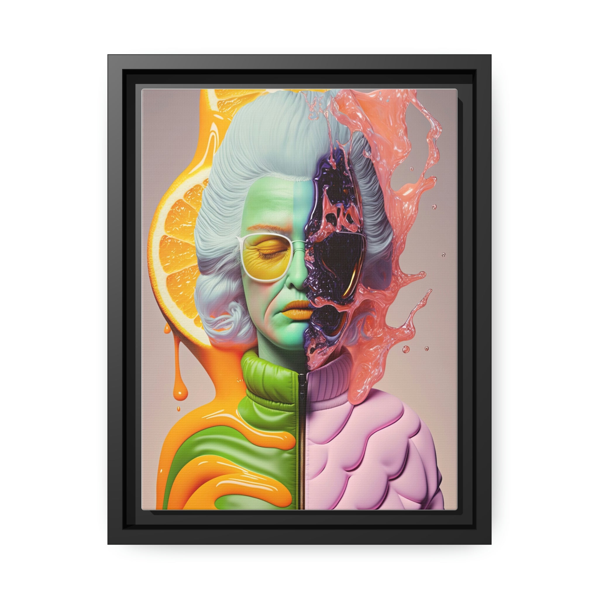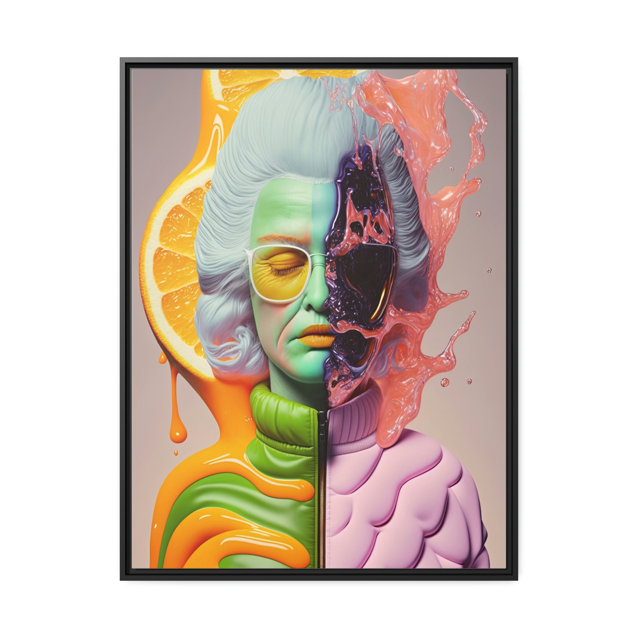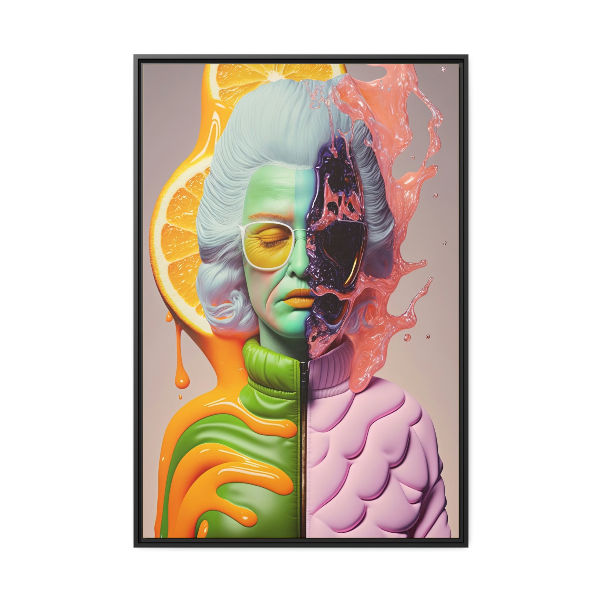 "Luminescent Orange" is a captivating canvas art piece that blends vibrant hues with unique and edgy design. The subject, a human with half the face covered in a black drip, is surrounded by a spectrum of vibrant yellows, greens, and oranges. The contrast of the bold black droop and the bright colors creates a dynamic and intriguing effect that will add interest to any room. Whether you're looking to make a statement in your living room or add a touch of edge to your office, "Luminescent Orange" is the perfect choice. Let this piece bring its luminescent beauty to your space today.
