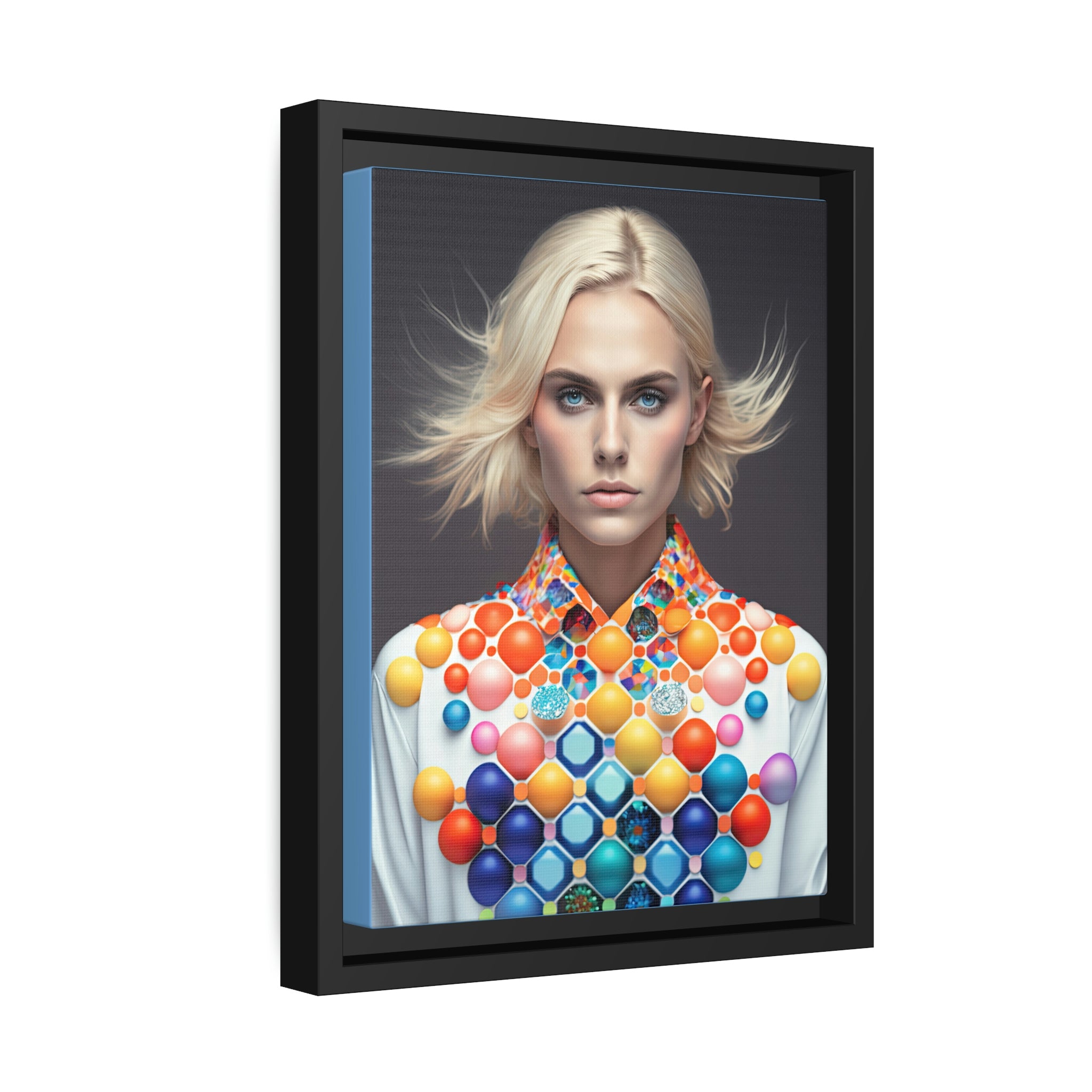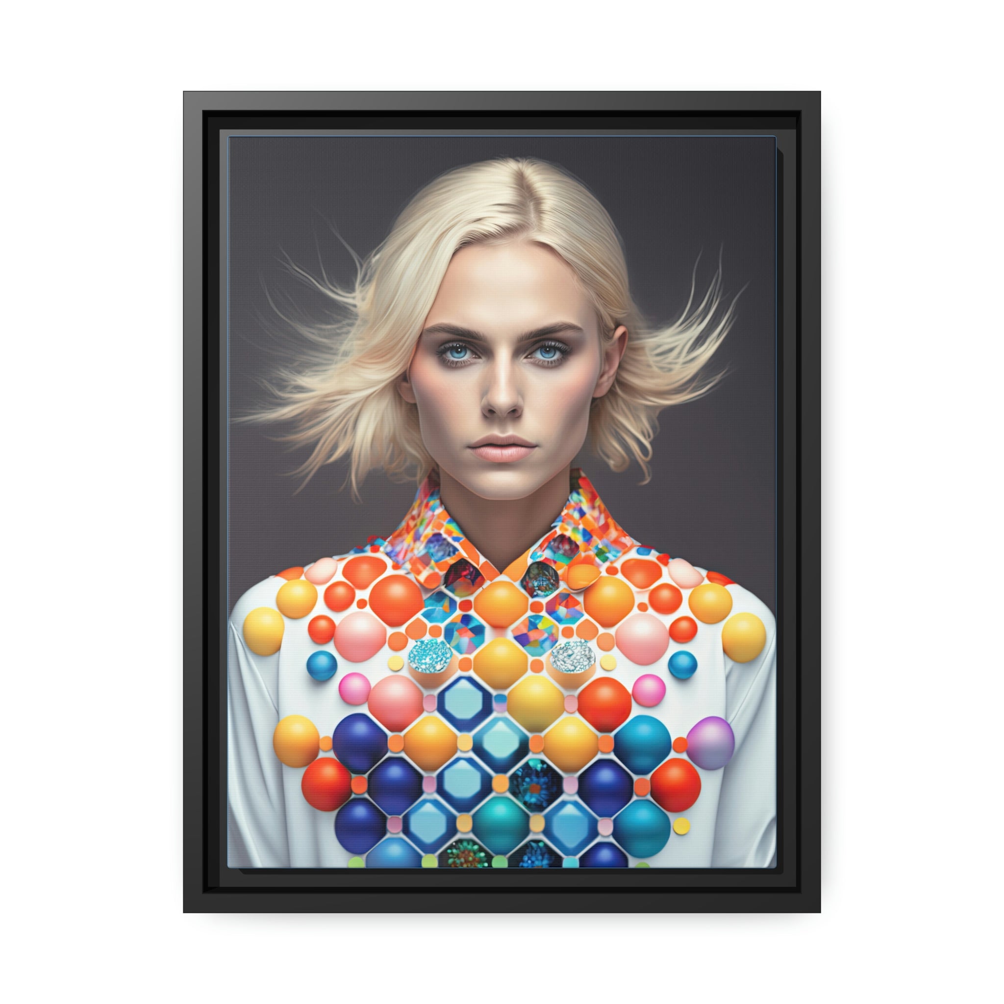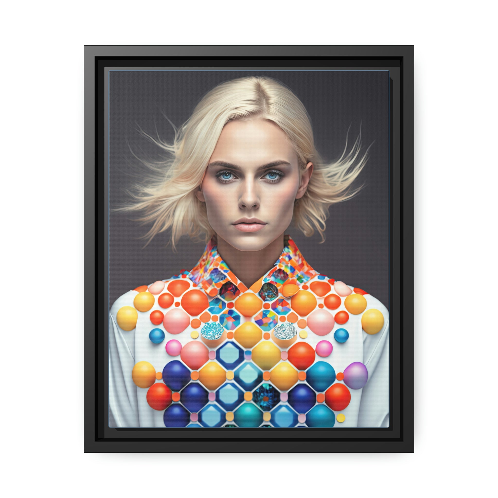 "Pirkko" is a lively and eye-catching piece of canvas art that brings a burst of color to any room. The subject, a blonde woman wearing a white jacket with a vibrant array of multicolored squares, is the focal point of this piece. The playful use of color creates a dynamic visual that is sure to draw the viewer's eye and add a touch of fun to any space. Whether you're looking to add a pop of color to your living room or bring a touch of playfulness to your office, "Pirkko" is the perfect choice. Let this piece bring its bold and colorful presence to your space today.