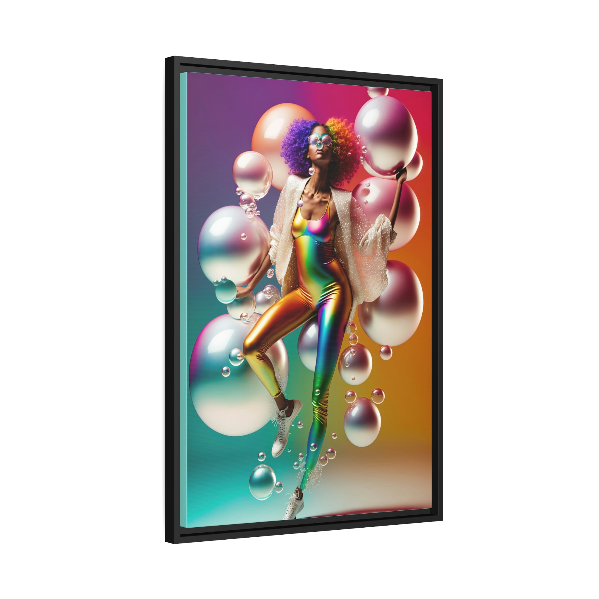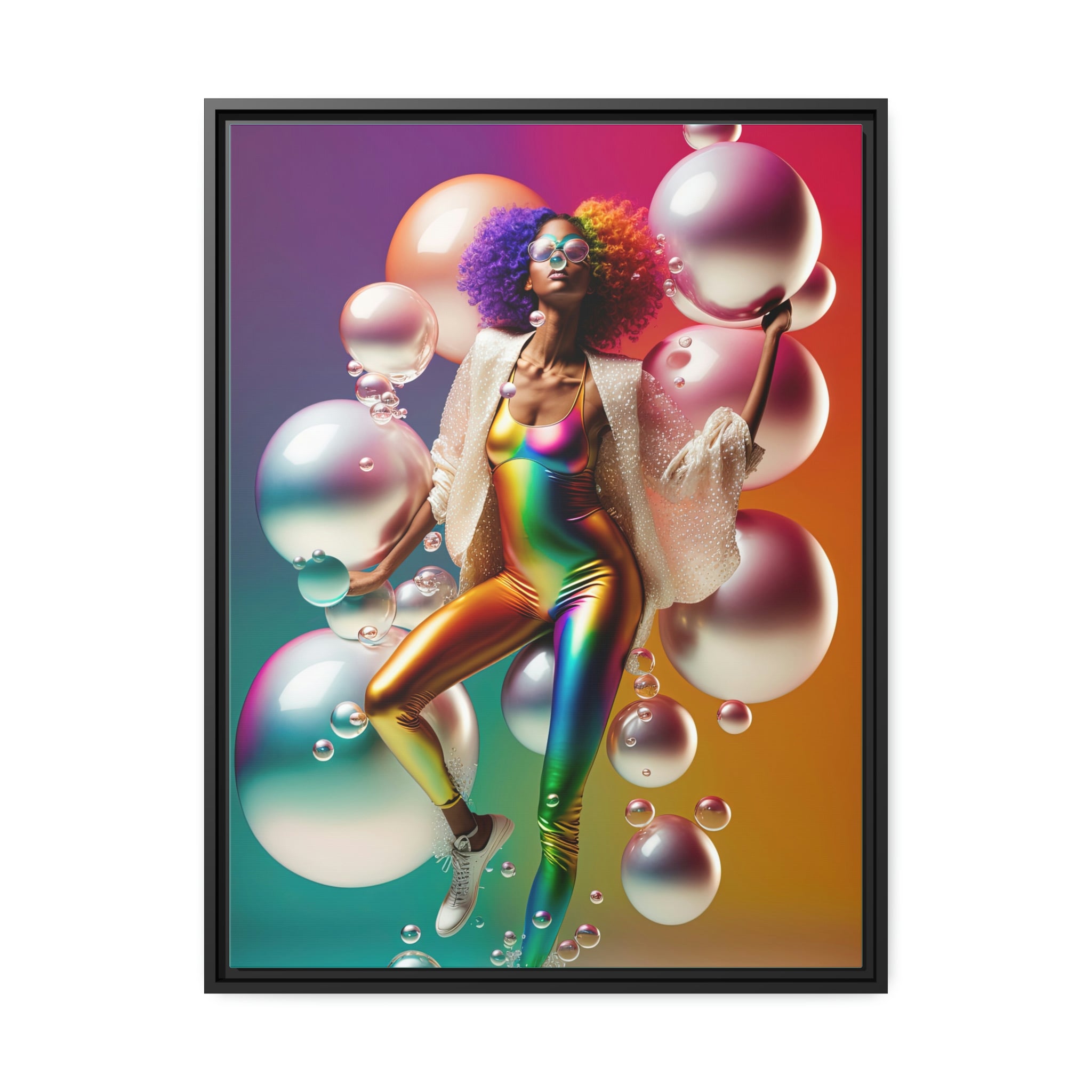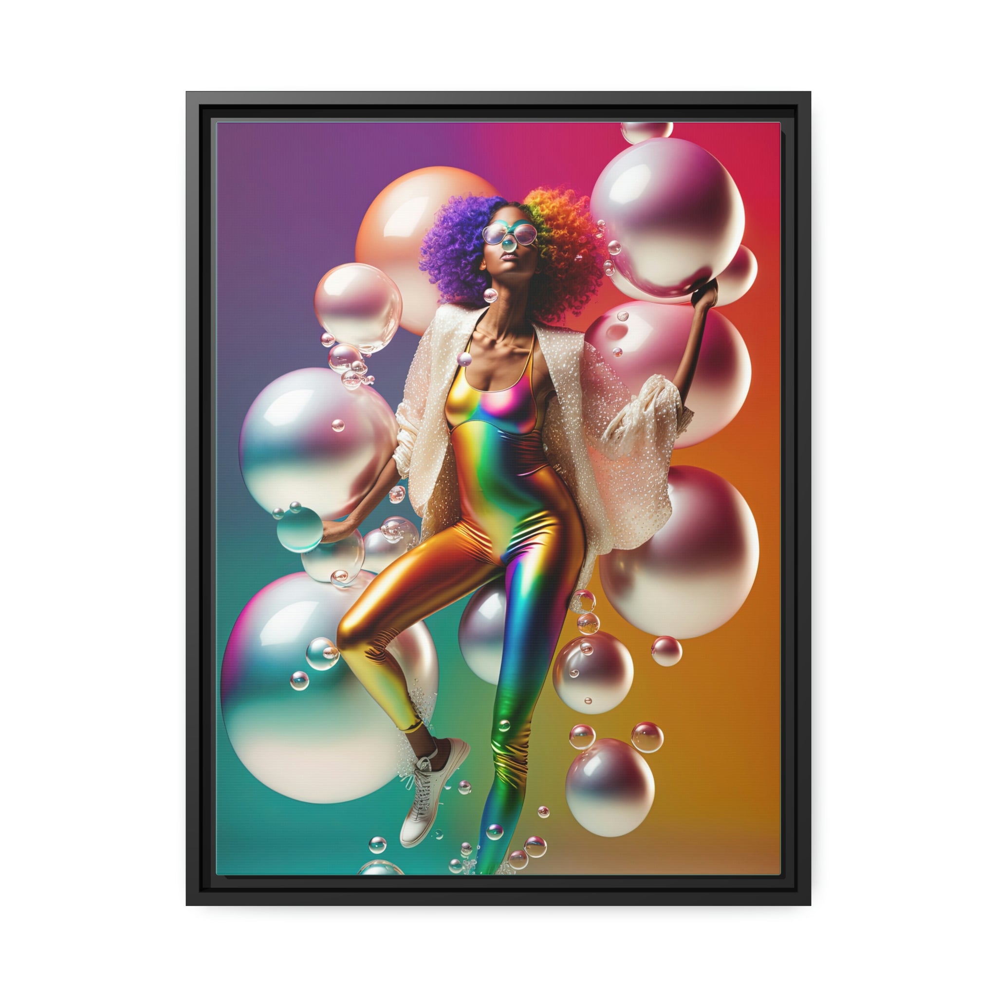 "That 70s Babe" is a funky and groovy piece of canvas art that captures the essence of the 1970s. The subject, a confident and stylish woman, is captured in an action pose wearing chromatic colored leggings and a bold jacket. The vibrant bubbles surrounding her add an extra pop of color, creating a truly unique and captivating visual. This piece is the perfect addition to any retro-inspired home, adding a touch of nostalgia and fun to any room. Whether you're looking to bring a touch of the 70s to your living room or add a funky accent to your bedroom, "That 70s Babe" is the perfect choice. Let this piece bring its retro vibe to your space today!