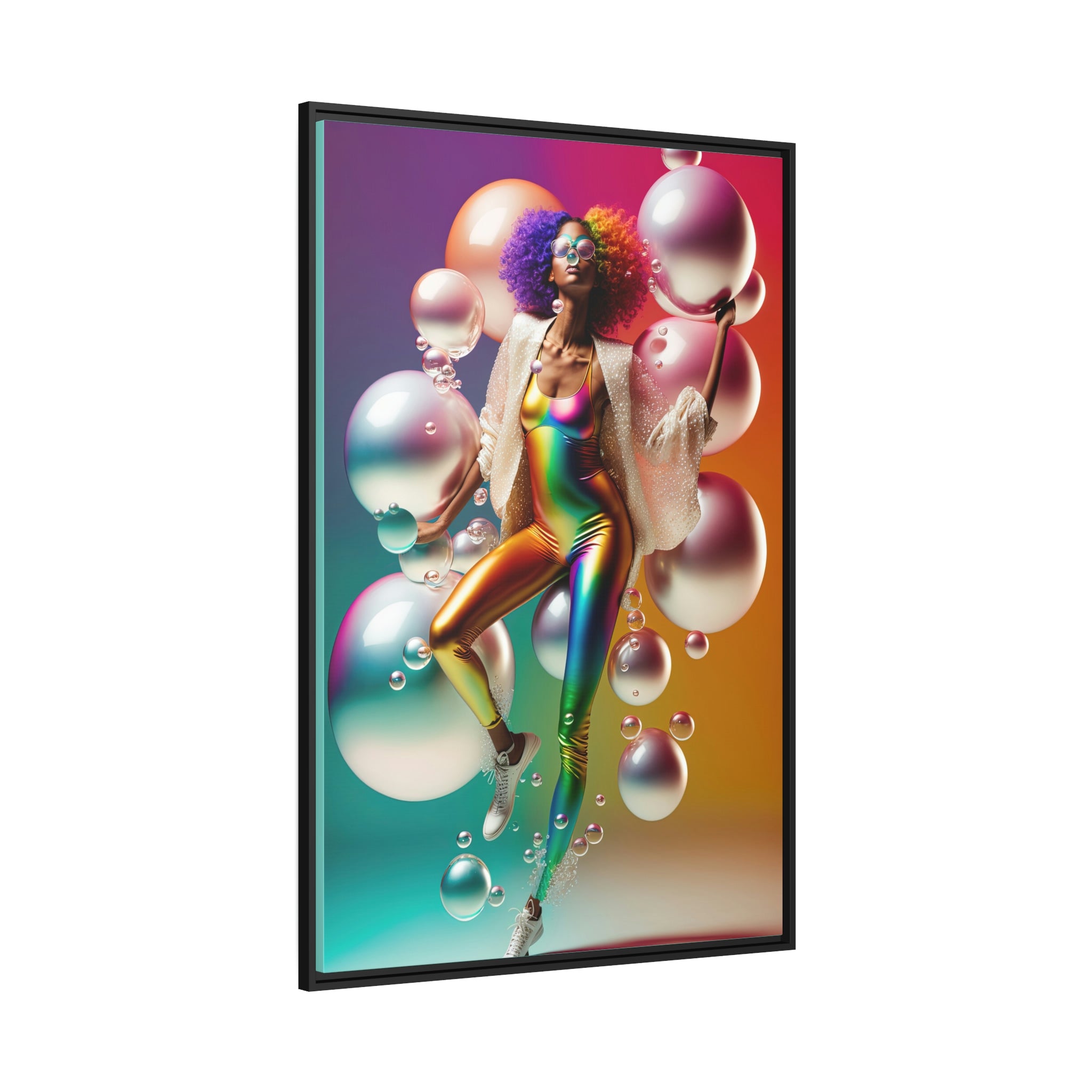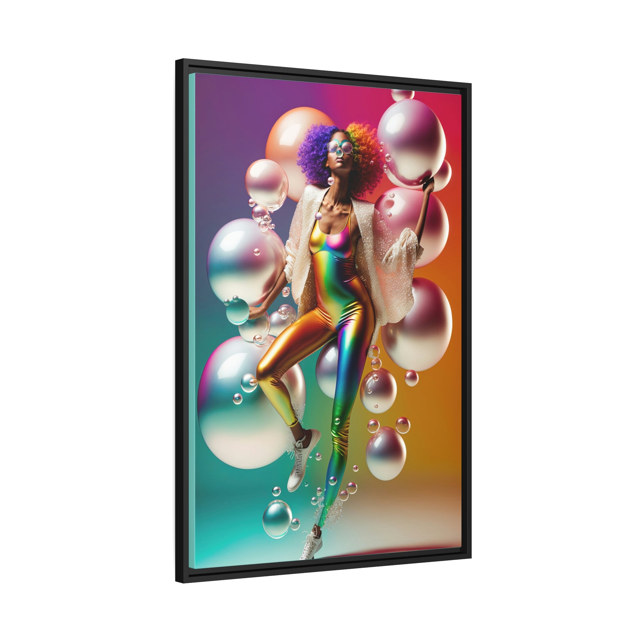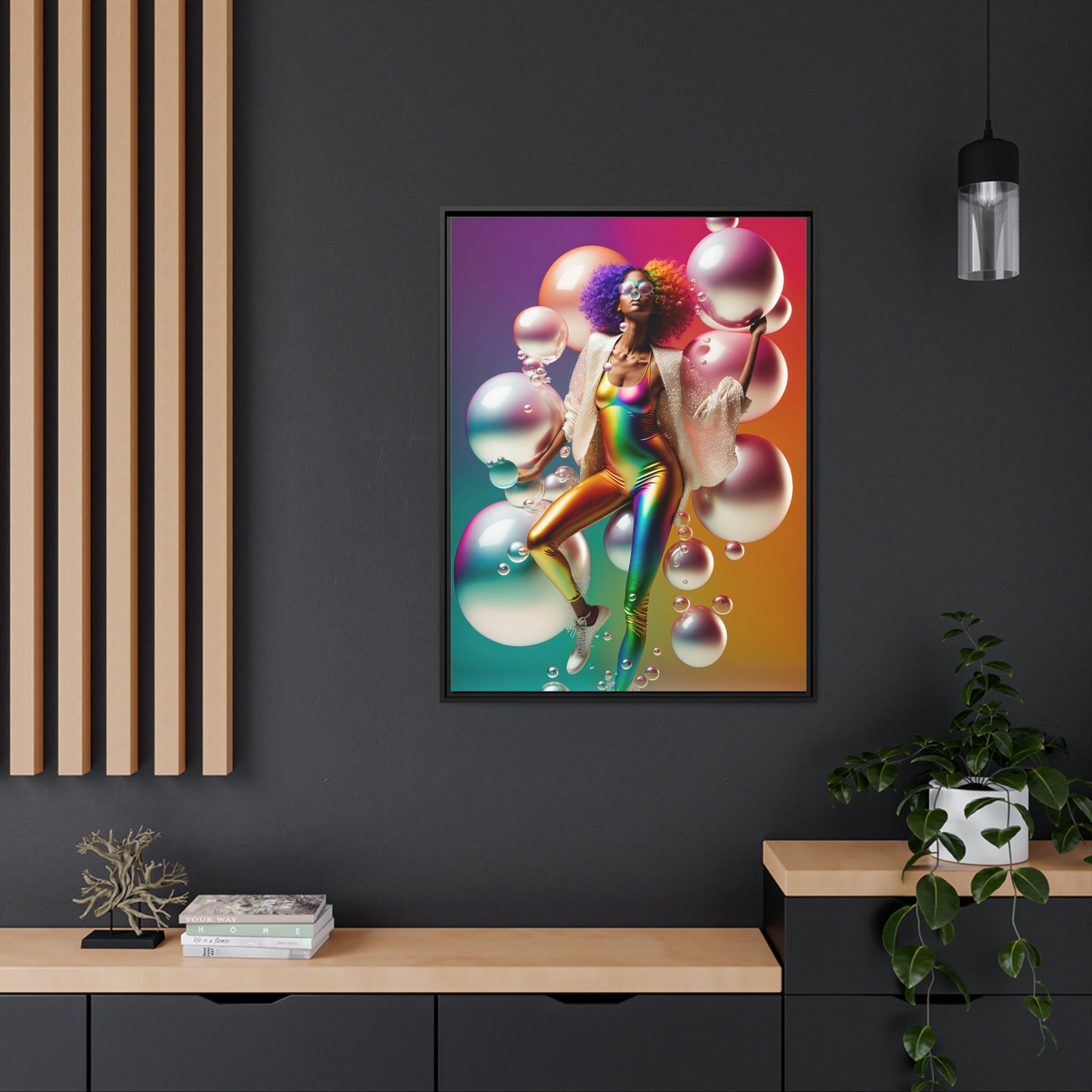 "That 70s Babe" is a funky and groovy piece of canvas art that captures the essence of the 1970s. The subject, a confident and stylish woman, is captured in an action pose wearing chromatic colored leggings and a bold jacket. The vibrant bubbles surrounding her add an extra pop of color, creating a truly unique and captivating visual. This piece is the perfect addition to any retro-inspired home, adding a touch of nostalgia and fun to any room. Whether you're looking to bring a touch of the 70s to your living room or add a funky accent to your bedroom, "That 70s Babe" is the perfect choice. Let this piece bring its retro vibe to your space today!