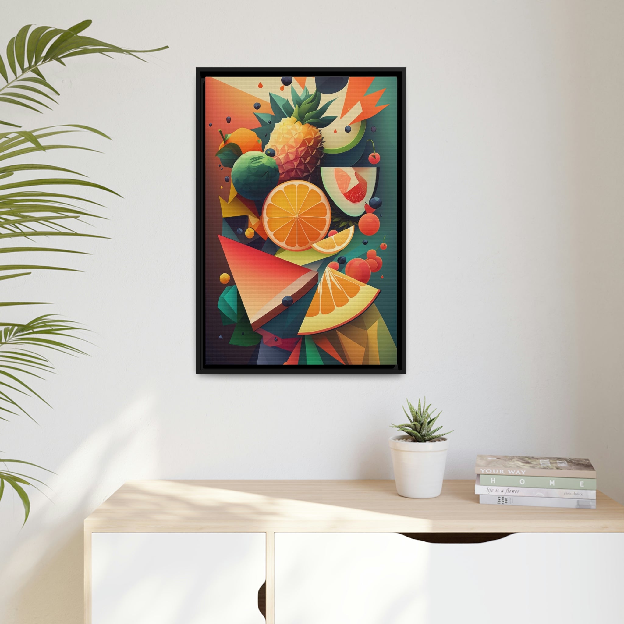 "Fruit Frenzy" is a lively and colorful piece of art that is sure to add a touch of fun to any room. Featuring a range of juicy fruits such as oranges and watermelon slices, this piece showcases a playful mix of vibrant colors and sharp lines. The bold use of color creates a dynamic visual that is sure to draw the viewer's eye and bring a burst of energy to any space. Whether you're looking to add a playful touch to your kitchen or bring a pop of color to your dining room, "Fruit Frenzy" is the perfect choice. Let this piece bring its fruit frenzy to your space today!