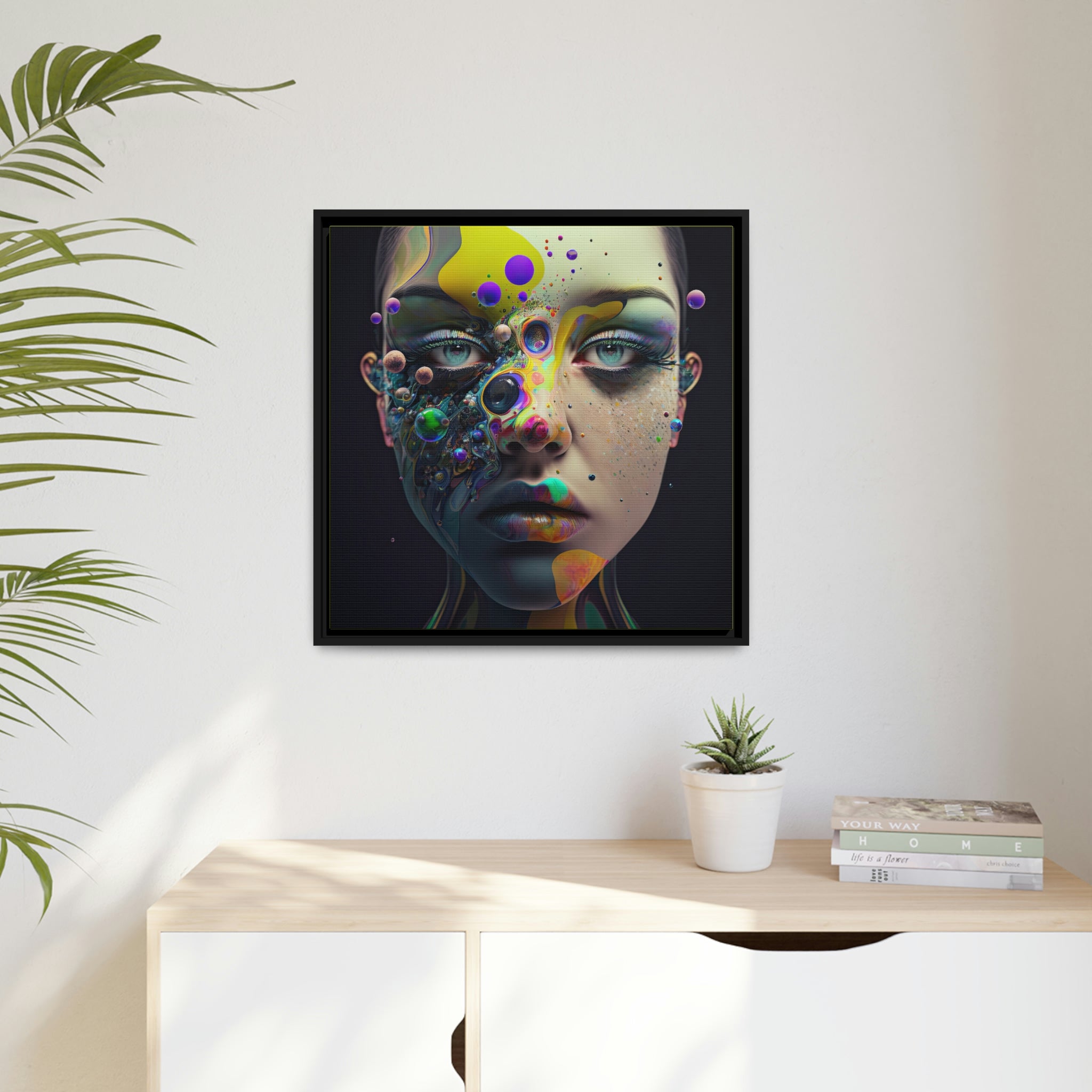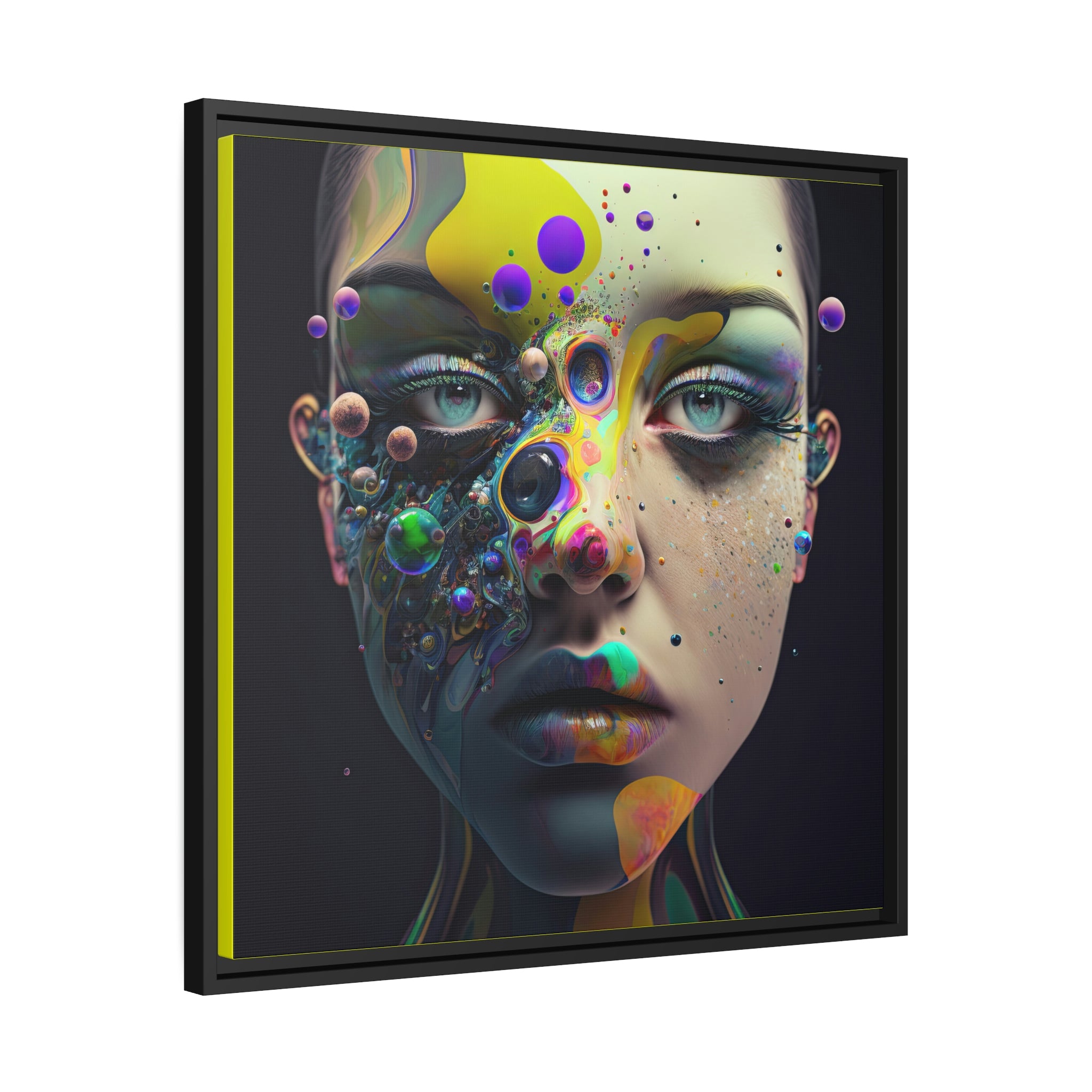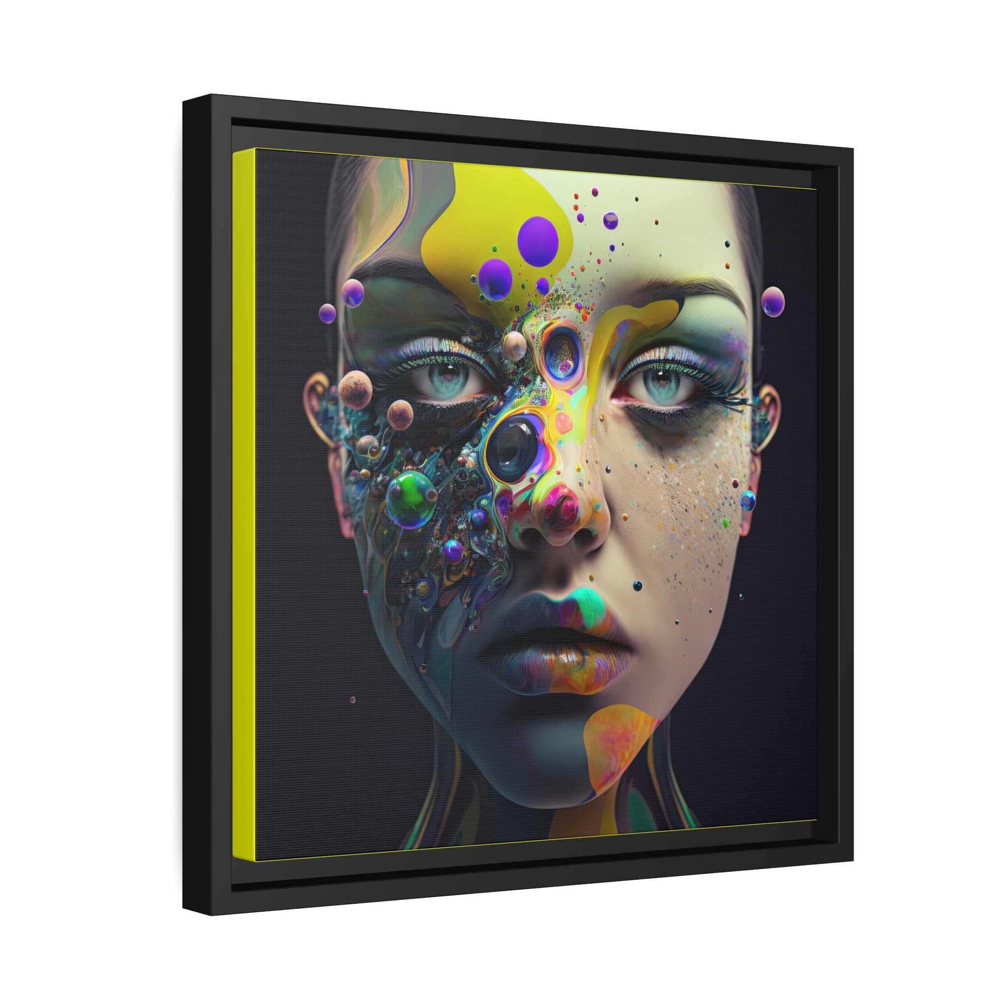 "Painted Paradox" is a captivating piece of canvas art that seamlessly blends art and fashion. The subject, a female with paint adorning her face, using striking yellow, black, and dark blue hues. The bold use of color creates a mesmerizing visual that is sure to leave a lasting impression. This piece is the perfect addition to any modern and stylish home, adding a touch of artistic flair to any room. Whether you're looking to make a statement in your living room or add a touch of elegance to your bedroom, "Painted Paradox" is the perfect choice. Let this piece bring its painted paradox to your space today.
