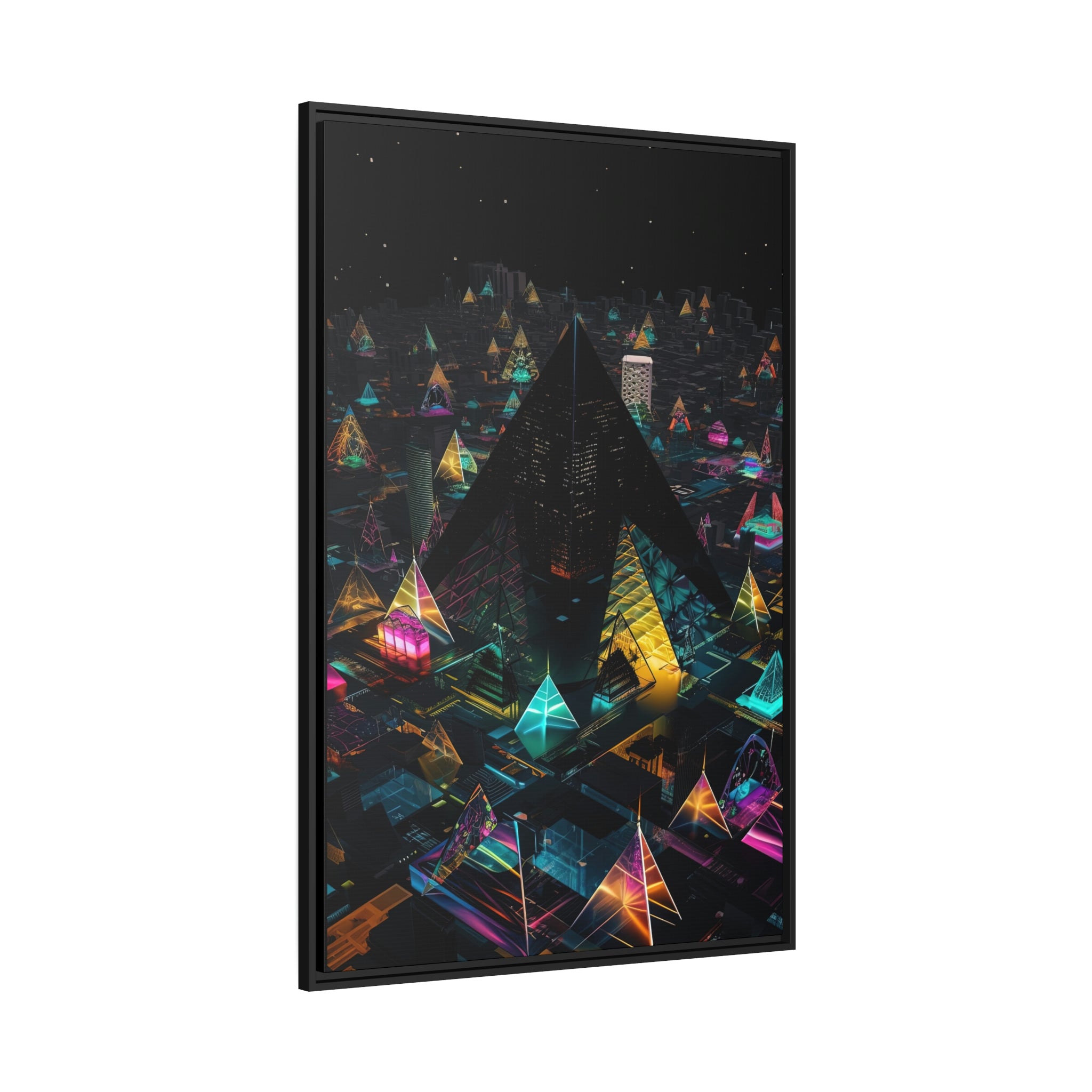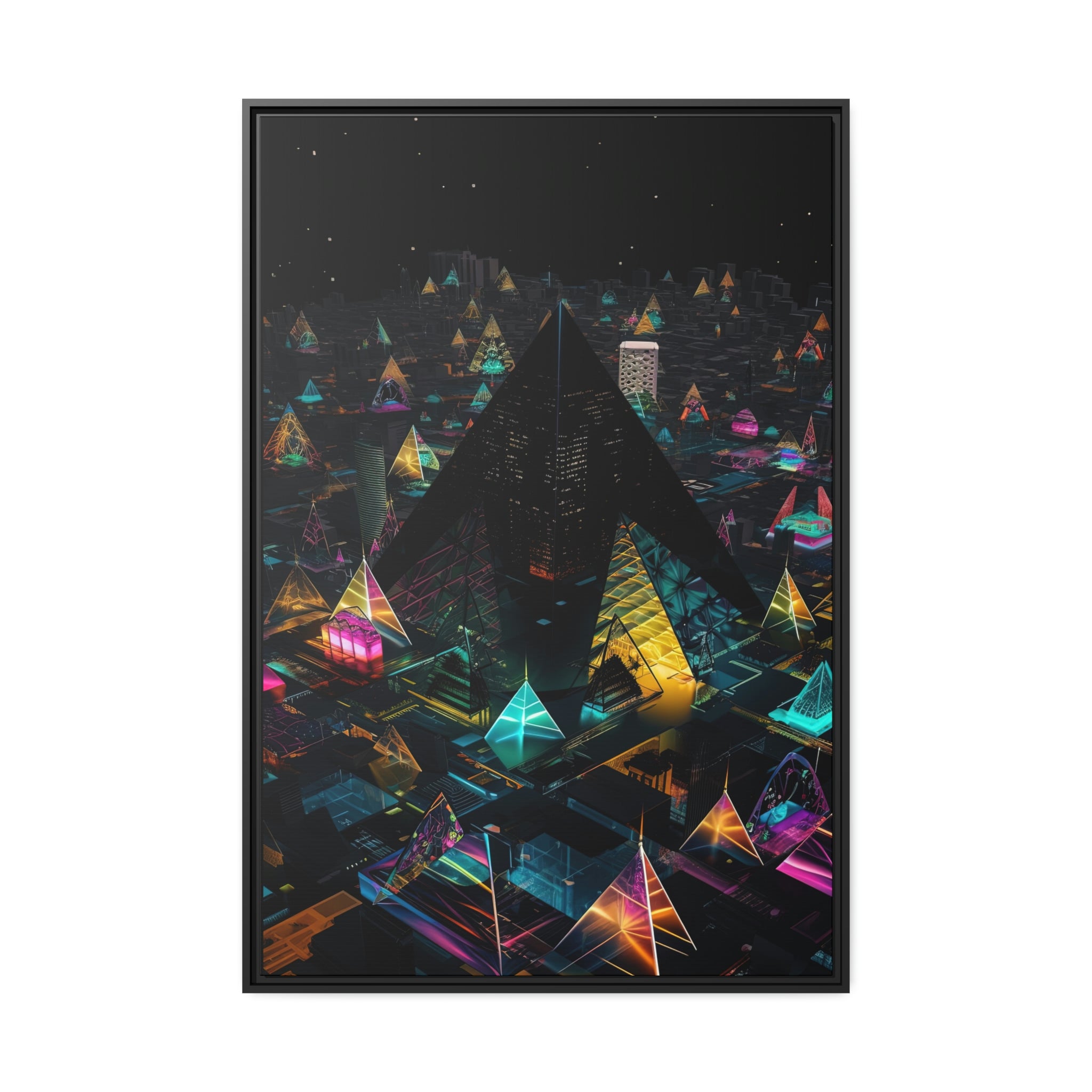 Whether you're a lover of modern design, a fan of sci-fi worlds, or simply someone who appreciates art that makes a bold statement, Pyramid Heights is the perfect addition to your home or office. Hang it in your living room, bedroom, or study, and let the imagination soar to new heights. With Pyramid Heights, the possibilities are endless, and the future is bright