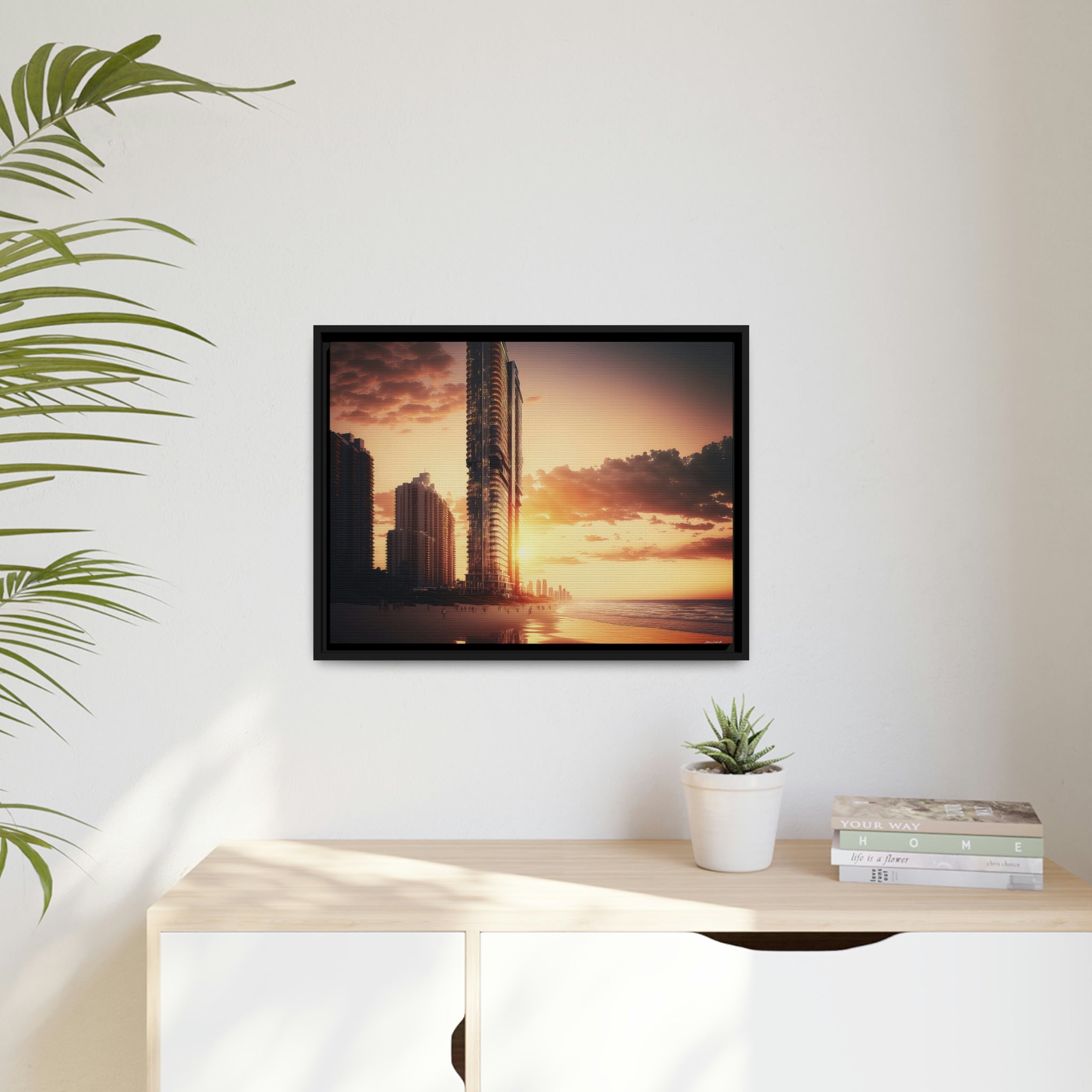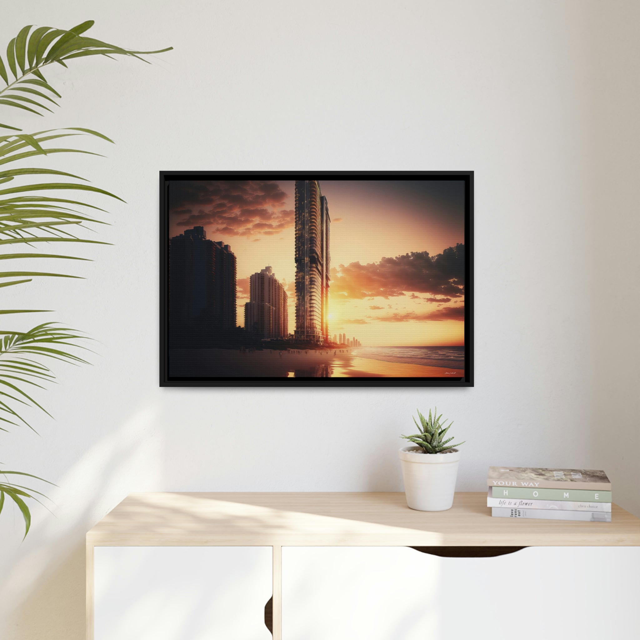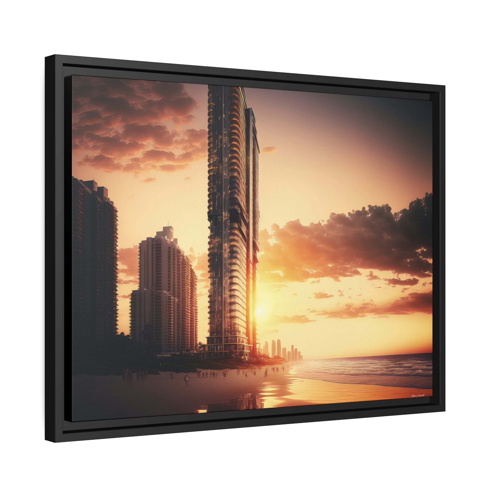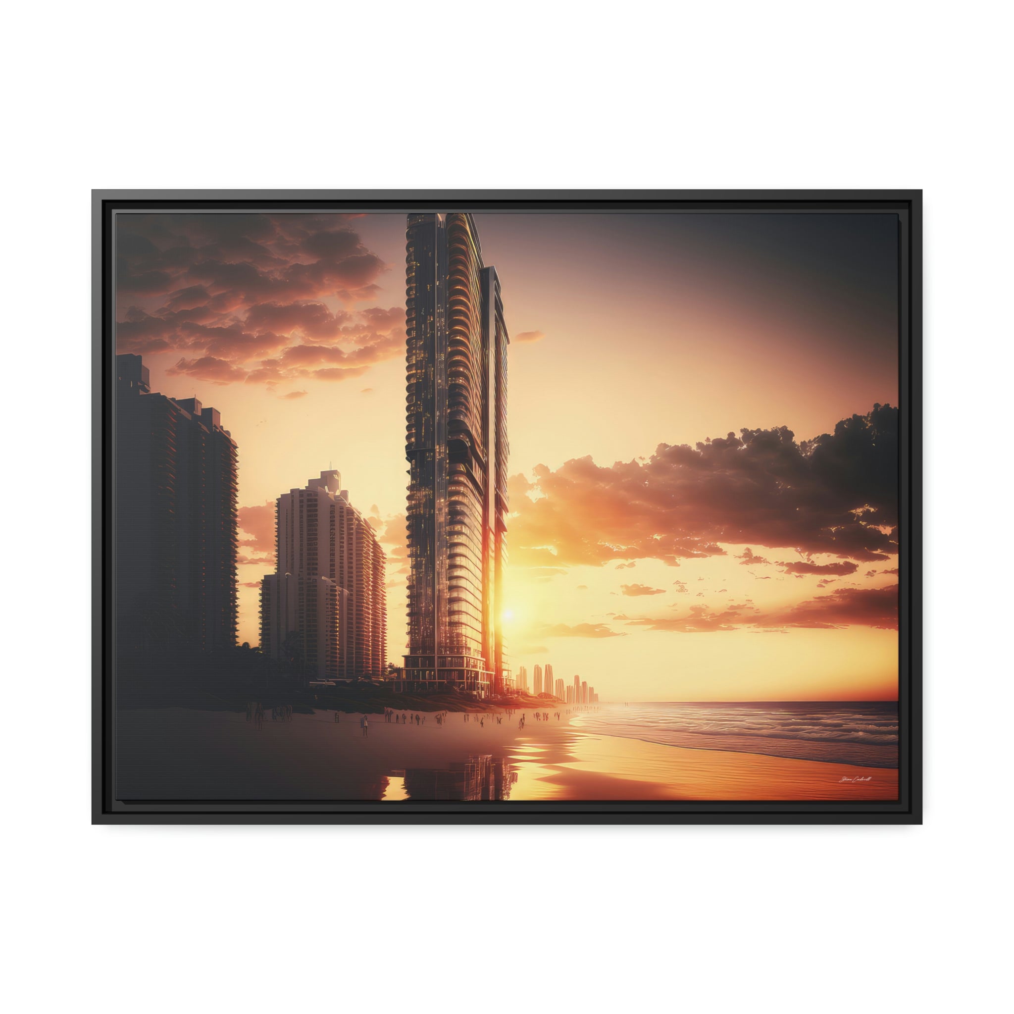 "Experience the breathtaking beauty of the Gold Coast beach at sunset with our stunning art canvas. Captured in stunning detail, the warm hues of the setting sun are perfectly complemented by the sandy beach and crashing waves. Hang this piece in your living room or office to bring a touch of paradise into your space. The high-quality canvas and vibrant colors ensure that this piece will be a statement piece in any room. Bring the beauty of the Gold Coast into your home with this stunning piece of art."