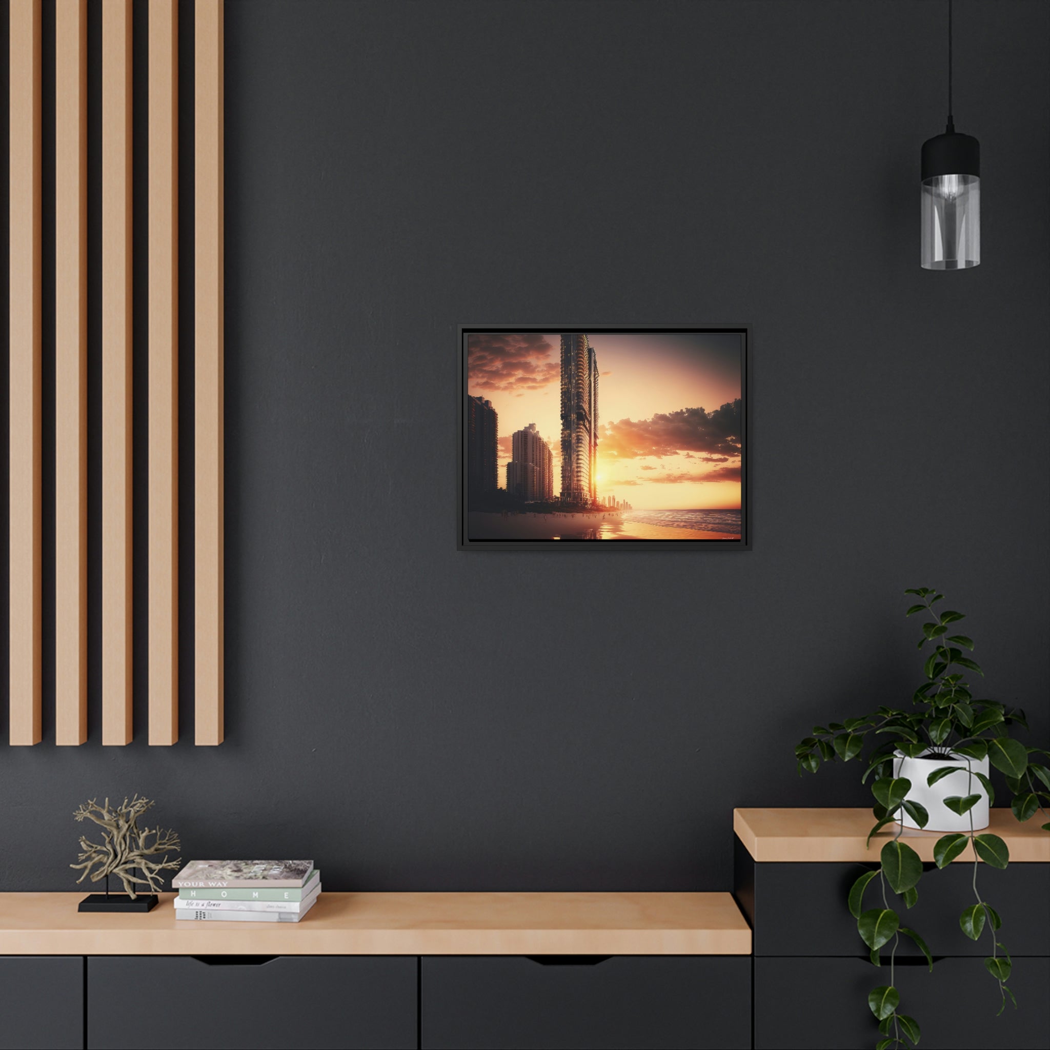 "Add a touch of elegance to your space with our sleek and stylish black pinewood framed canvas prints. Each piece features your original designs printed on a durable cotton-polyester canvas composite with a special proprietary coating, ensuring that your designs will stay vibrant for years to come. Our canvases are made from sustainably sourced materials, making them an excellent choice for environmentally-conscious buyers. Available in multiple sizes, with sawtooth hanging hardware included. Please note, due to the production process, slight size deviations of +/- 1/8" (3.2mm) may occur."